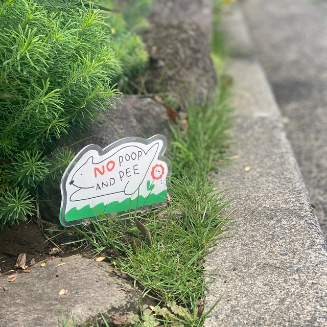 PLANTEDオリジナルアイテム お庭がある方のご相談で ワンちゃんの落とし物に困っているということがあります。 せっかく育てた植物が枯れてしまうのは悲しいので 可愛らしいイラストでNGプレートをデザインしていただきました。